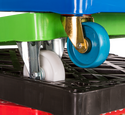Optimale Raumnutzung durch Stapelung. Lange Nutzungsdauer der Rollpalette durch hohe Materialbeständigkeit. Leichtes Handling wegen geringem Eigengewicht.